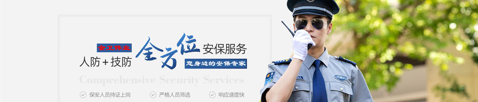 高素質(zhì)的專業(yè)保安隊(duì)伍 保一方平安 創(chuàng)優(yōu)質(zhì)服務(wù)